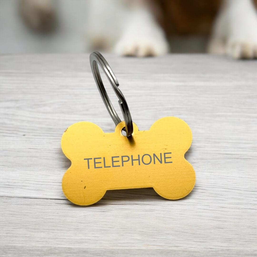 Médaille pour chien en forme d’os, personnalisée avec le nom de votre animal et son numéro de téléphone